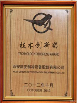 2012年10月,由西安慶安制冷設備股份有限公司頒發(fā)技術創(chuàng)新獎。